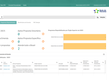 Aqui estão os projetos financiados com recursos provenientes de emendas parlamentares.